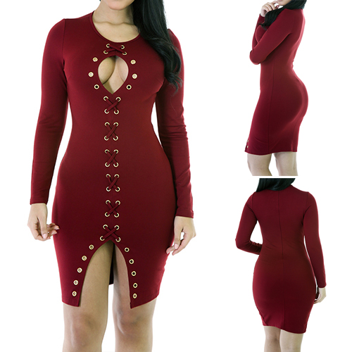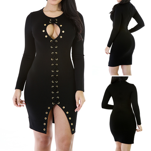 show off your seductive curve. Front with lace-up style,with slit hem and hollow out design makes it