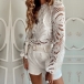 Sexy Long SLeeve Solid Color Solid Color Hollow Out Lace Top