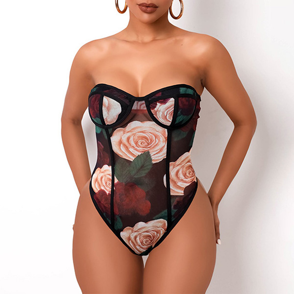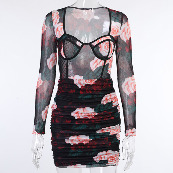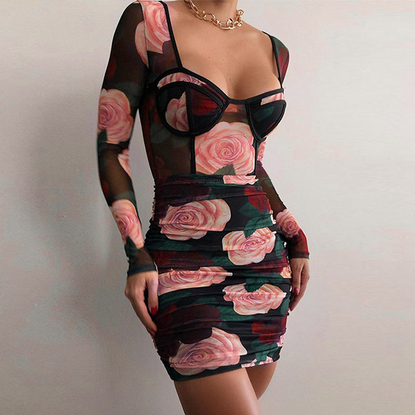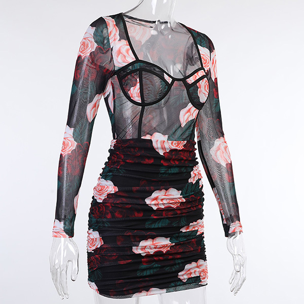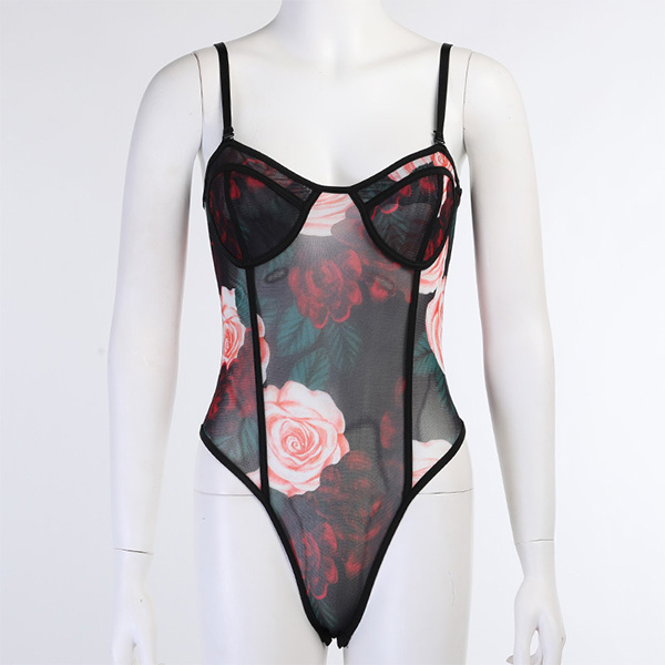 There is no doubt that why all the eyes are focused on you when you don this little stunner. See-through style design will make you look flirty and alluring. Features chic and eye-catching printed details,with a tight silhouette,this piece also can demonstrate your seductive curve. You can just slip into this piece to express your beauty and charm.