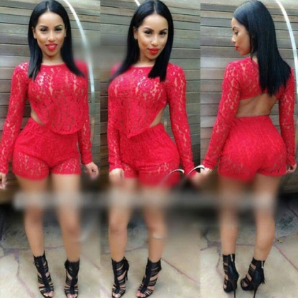 Two-piece style,featuring red color,which will make you stand out in the crowd. Tops with backless,