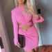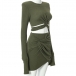 Sexy Long Sleeve Twisted Hem Solid Color Crop Top + Skirt Two-piece Set