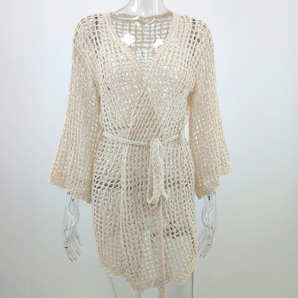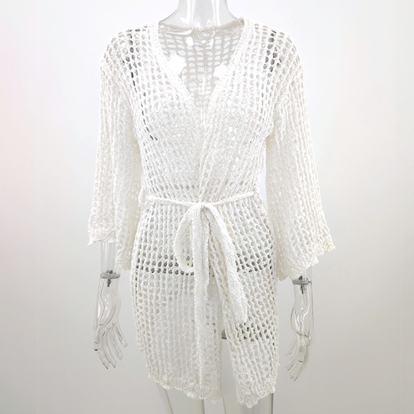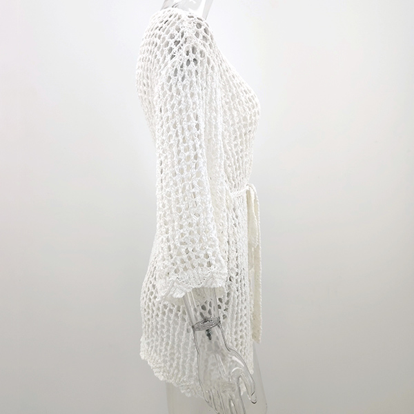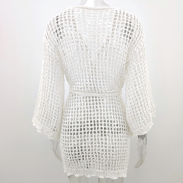 Sexy Long Sleeve V-neck Hollow Out Knit Cardigan Bikini Smock