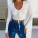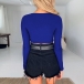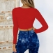 Sexy Long Sleeve V-neck Solid Color Crop Top