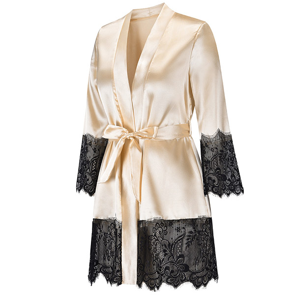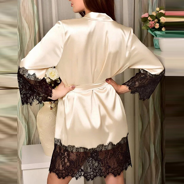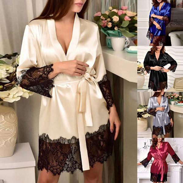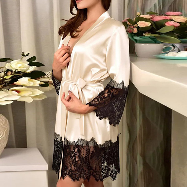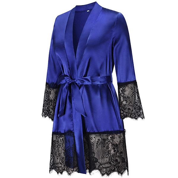 After taking the bath,you deserve to have an utmost comfort. So let this robe give you that feeling! Its super-thin,soft and smooth fabric can ensure the comfy,while the lace spliced details and v-neck design will exude your femininity. The waist strap design makes it easy to wear and off. Your perfect partner for your home time and sleeping time.
