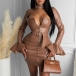 Seductive appeal can come easily once you don this PU leather dress. The ruffle cuff and low-cut square collar design make this piece look so alluring and feminine,while the tight silhouette and waistband design will demonstrate your seductive curve. Save this little stunner for your night events.