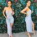 Its delicate details such as low-cut v-neck,irregular hemline with knotted design makes this dress