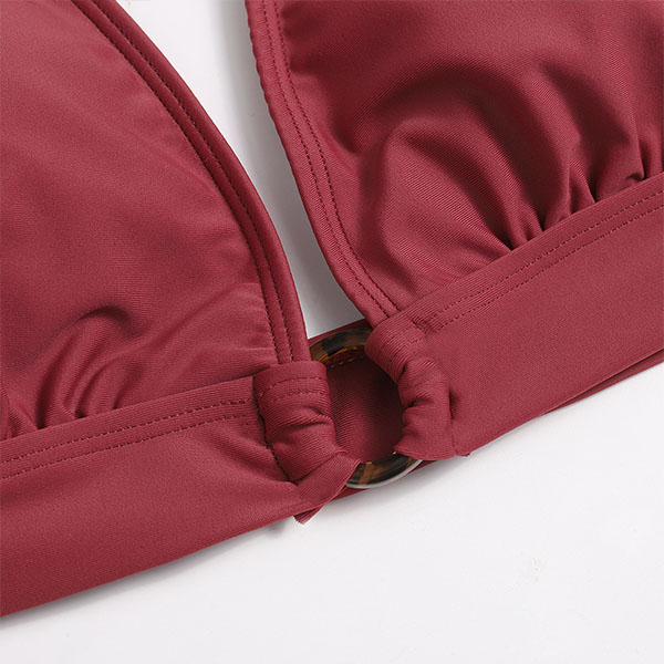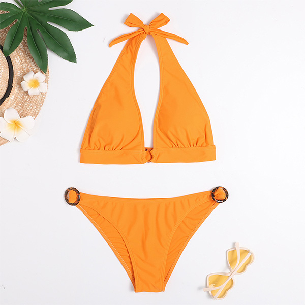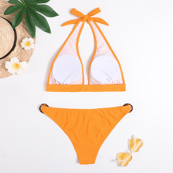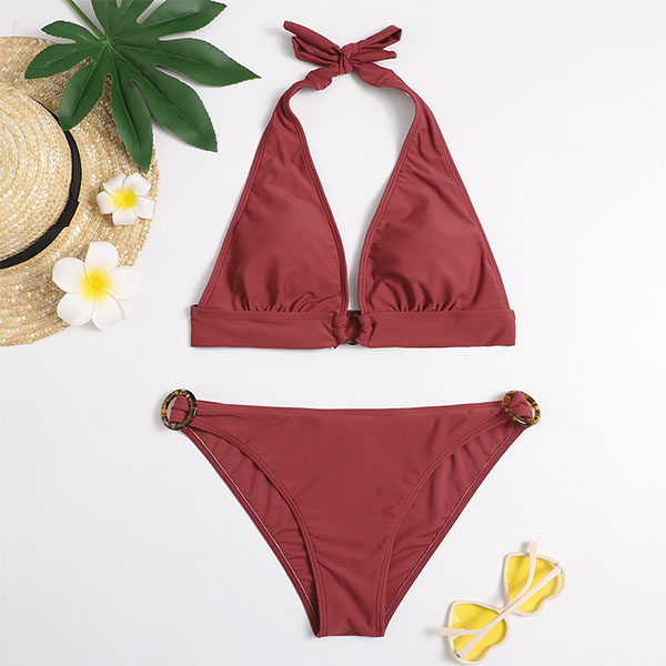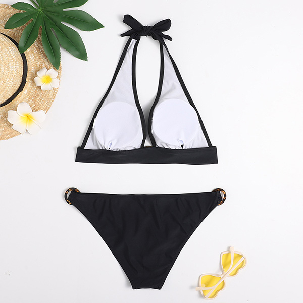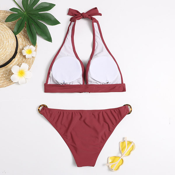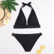 Sexy Low-waist Backless Solid Color Halter Bikini Set