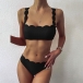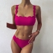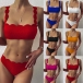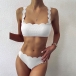 Sexy Low-waist Backless Solid Color Wavy Edge Bikini Set