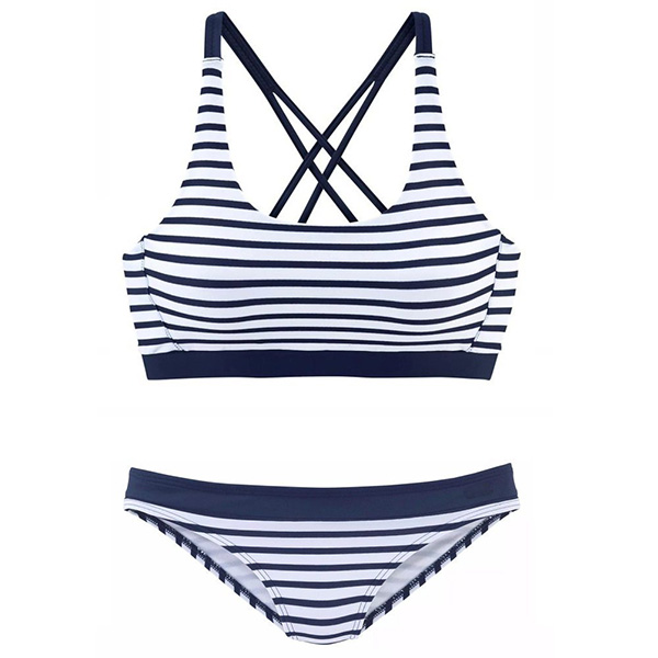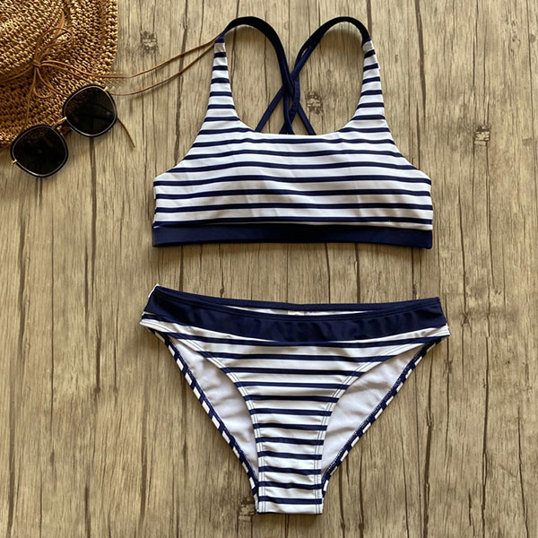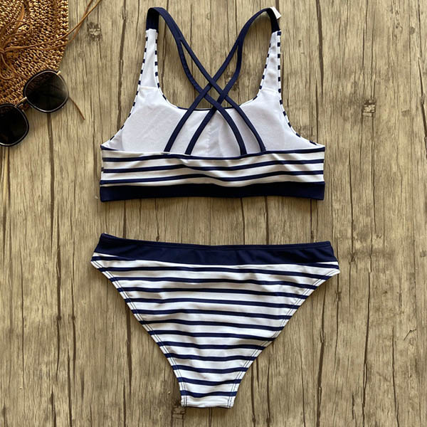 Sexy Low-waist Backless Striped Bikini Set