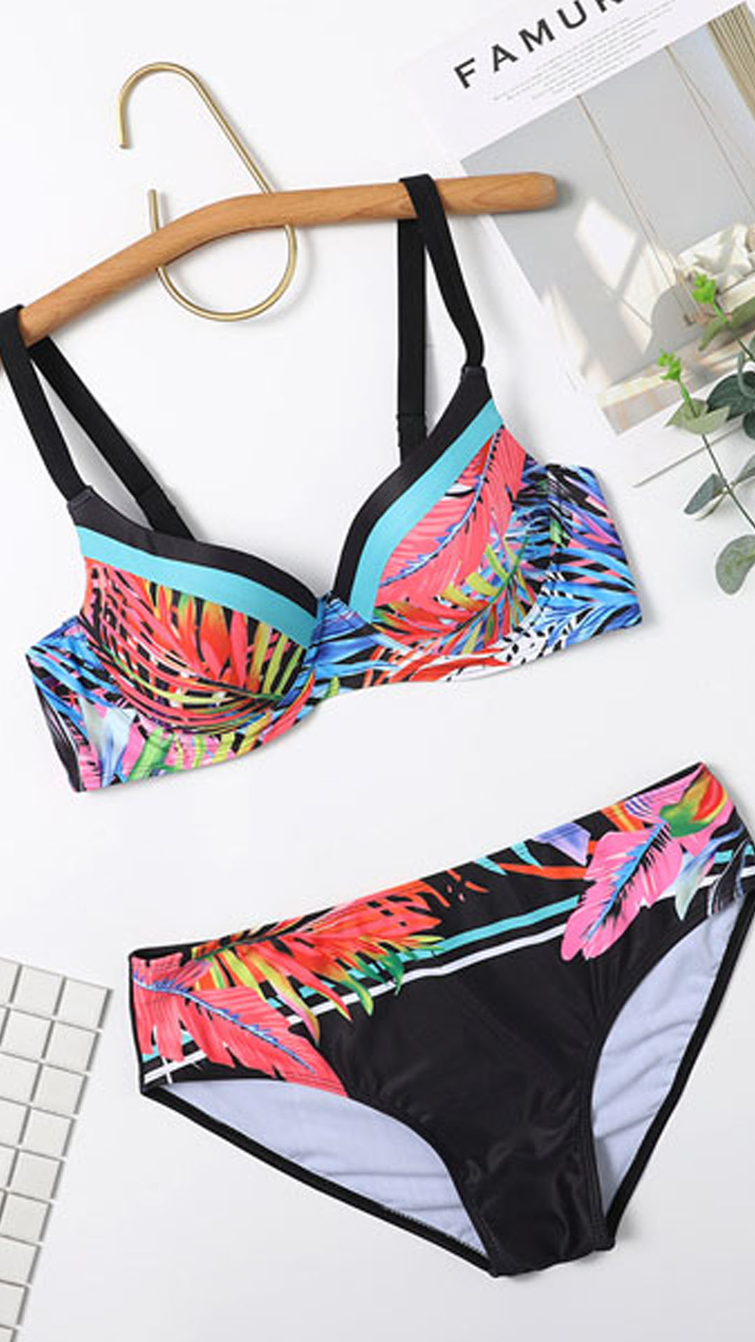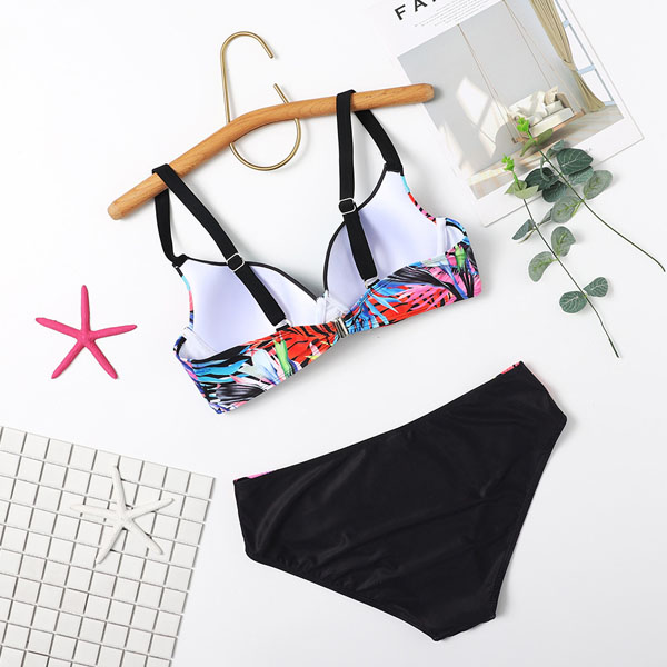 It is an easy thing to achieve for an eye-catching beach look with the help of this bikini set. The colorful printed details make it look so distinctive and attractive. Including a push-up bikini set and a low-waist bikini bottom,this bikini set is perfect fit for your beach days and tropical getaways.