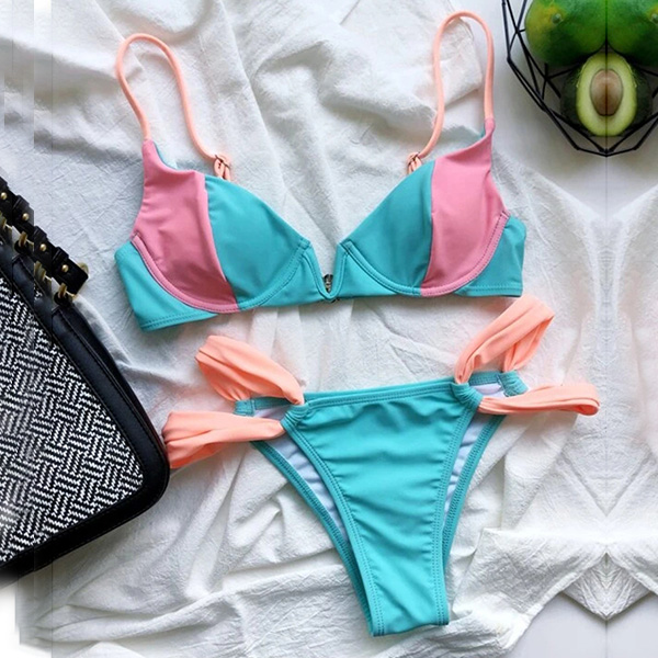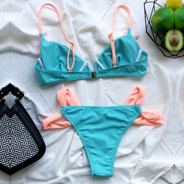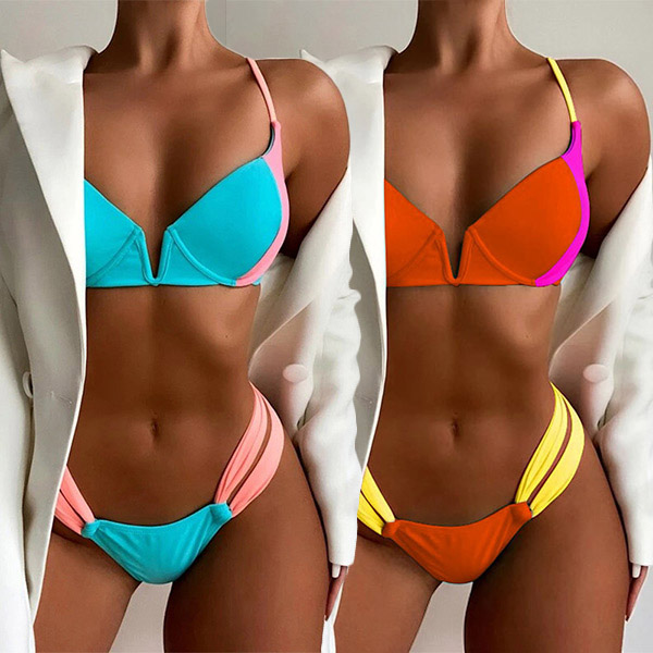 For your beach days and tropical getaways,you can trust in this bikini set to have a happy and wonderful day. Contrast color design makes it look not so simple and dull. Including a push-up bikini top and a low-waist bikini bottom,this bikini set can showcase your seductive curve. When adding a body chain,you would be more charming!
