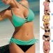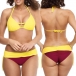 When you wanna head to the seaside,you can just have a relax in this bikini set. Contrast color design makes it look not so simple and dull. Including a lace-up halter bikini top and a low-waist bikini bottom,this bikini set is a good chance to flaunt off your sexy and seductive curve. Different colors for your optional.