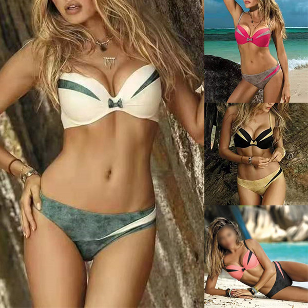 For the summer days,it is a good time for you to head to the seaside to relax yourself. So we suggest you this cozy yet sexy bikini set. Contrast color design makes it look not so simple and dull. Including a backless push-up bikini top and a low-waist bikini bottom,this bikini set is sure to flaunt off your sexy and seductive curve.