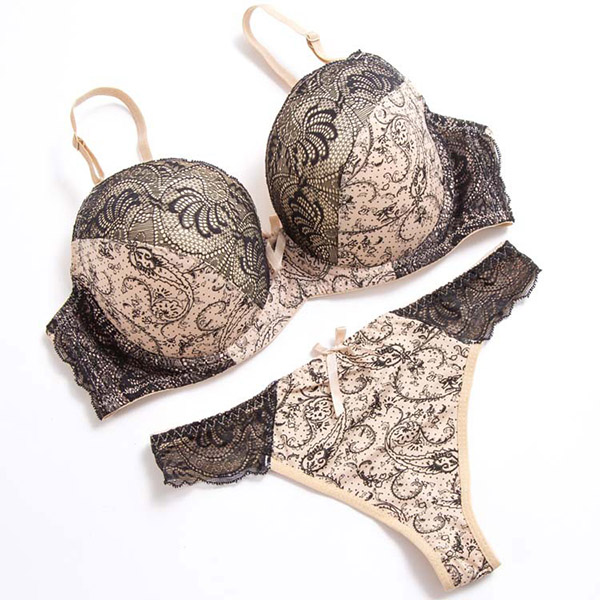 For every girls,a cozy yet sexy bra set is an essential. SO might we suggest you this set? The push-up and underwire design can better shape your chest,while the lace element design can exude your charming femininity. Including a low-waist briefs and a push-up bra,this underwear set is worth to your attention.