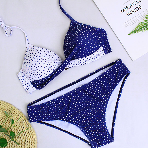 When invited to a bikini party,this halter bikini set can make you be the most stunning bikini girl. The low-waist and crossover design make it look so sexy and distinctive. It not only can give you a long-lasting comfort,but also can showcase your sexy and seductive curve.