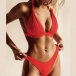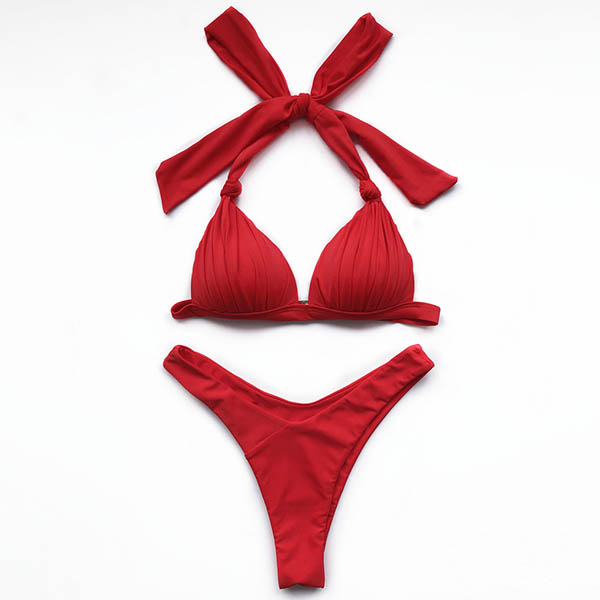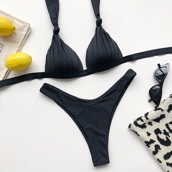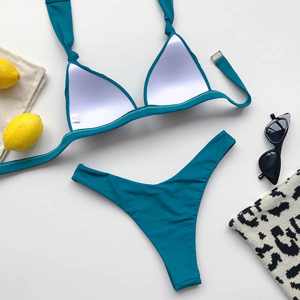 When invited to a bikini party,this bikini set can help you be the most stunning bikini girl. Solid color style,including a low-waist bikini bottom and a deep v-neck bikini top,this bikini set knows how to flaunt off your seductive curve. When adding a stunning body chain,you can look more beautiful.