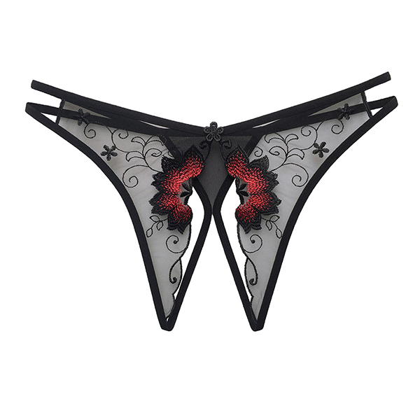 Inject a dash of sexy and alluring vibes to your look with this T-back. See-through gauze and embroidery details make this piece look so flirty and sexy. You can add some different flavor to your dull life with this T-back.