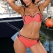 When you wanna head to the seaside,you can just slip into this bikini set to express your beauty and charm. The gold tone element design will enrich the design style. Including a low-waist bikini bottom and a push-up bikini top,this bikini set can ensure you a happy and unforgettable beach trip.