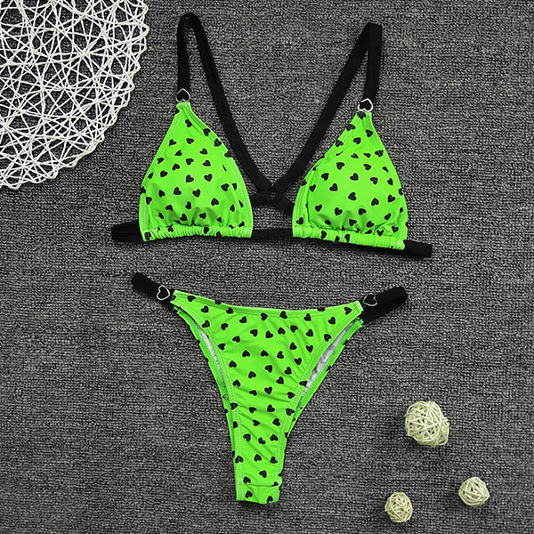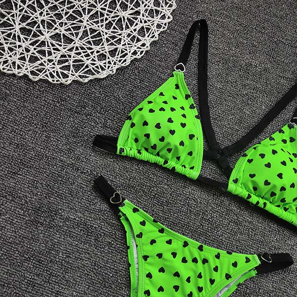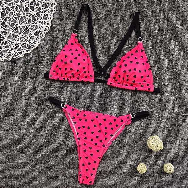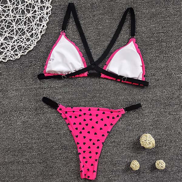 Sexy Low-waist Heart/Leopard Printed Bikini Set