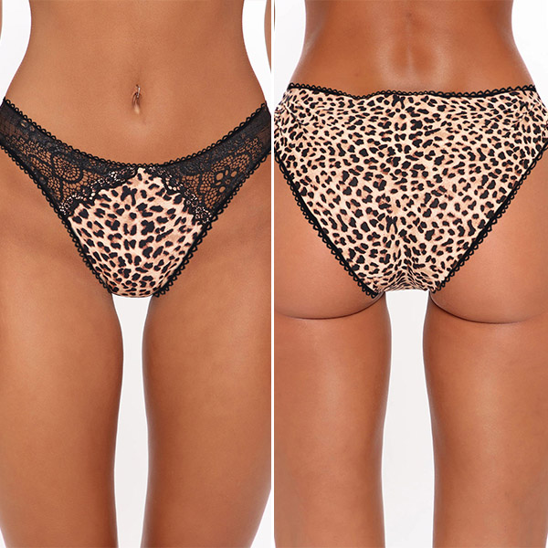 Add this cozy yet sexy briefs to your wardrobe. The lace details will enhance its flirty vibes,while the leopard printed details will make it look more stylish and eye-catching. Meanwhile,the low waist,breathable fabric can give you an utmost comfort. An essential for the girls.