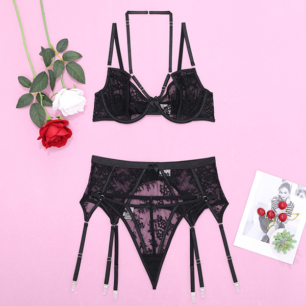 Sexy Low-waist Lace Spliced Underwear Set Lingeries
