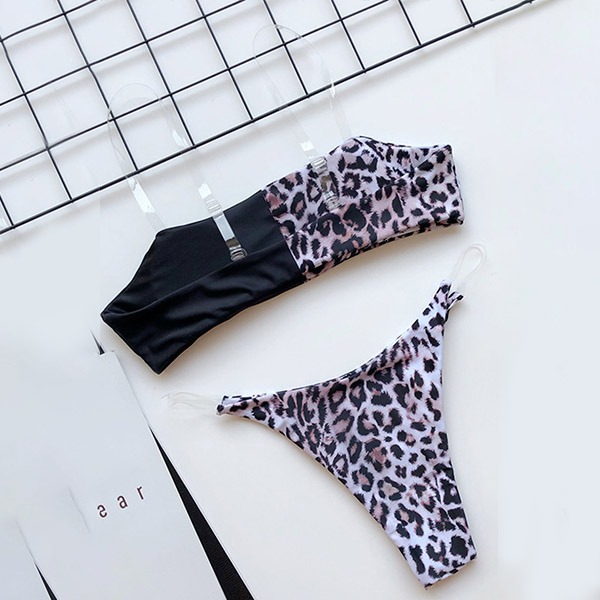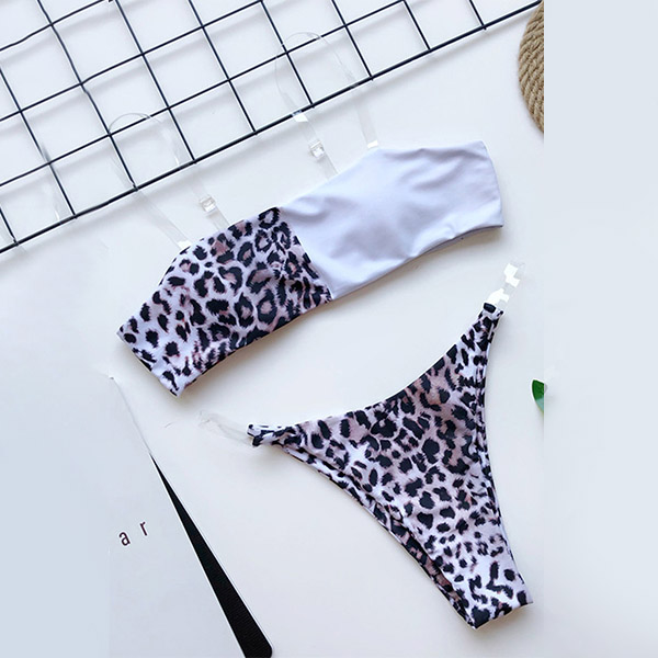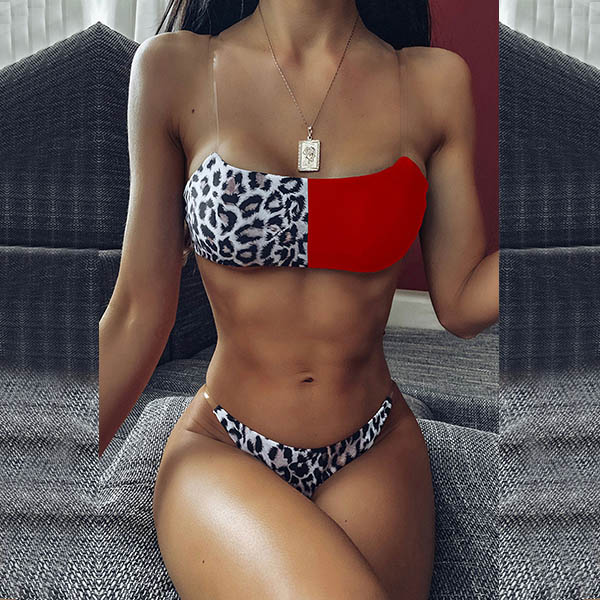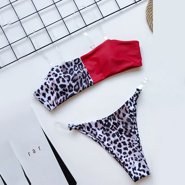 For your beach days,this bikini set can easily strike your mind. Contrast color element and leopard printed details make it look so eye-catching and attractive. When you wear it,your sexy and seductive curve can have a full display!