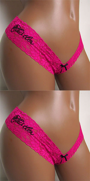 Add a dash of sexy and flirty tone to your wardrobe ensemble with this lace panty. The pink tone accompanied with letters