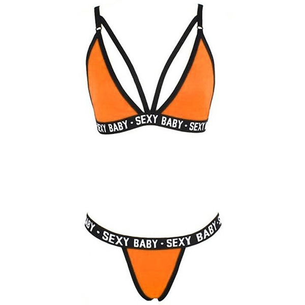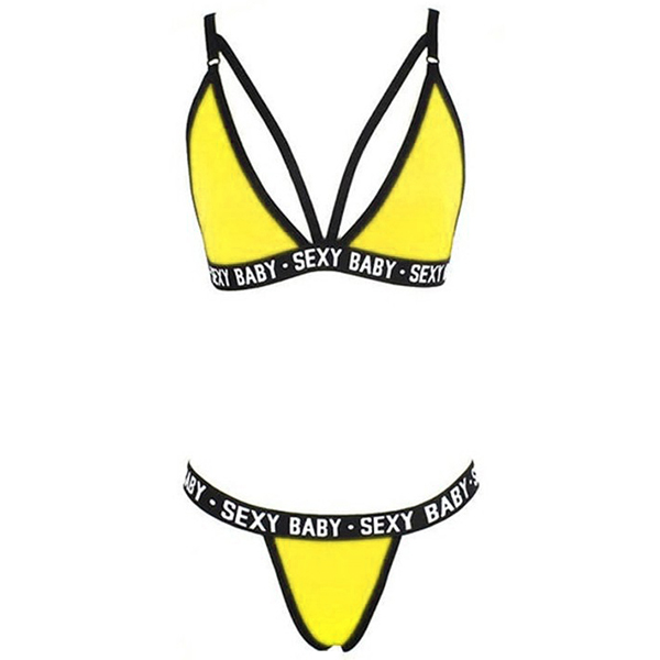 Consists of a low-waist briefs and a hollow out bra,this underwear set can give you a long-lasting comfort with its soft and breathable fabric. And the letters printed details will enrich the design style. It is worth to be your secret weapon to shape your sexy and seductive curve.
