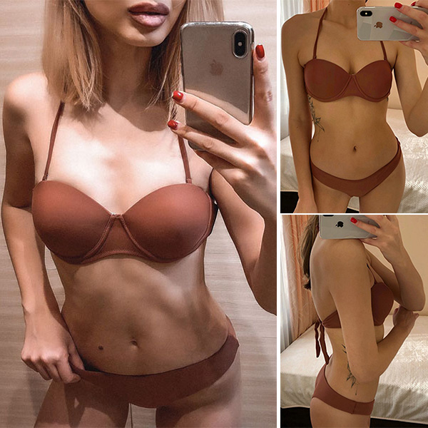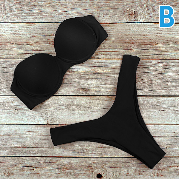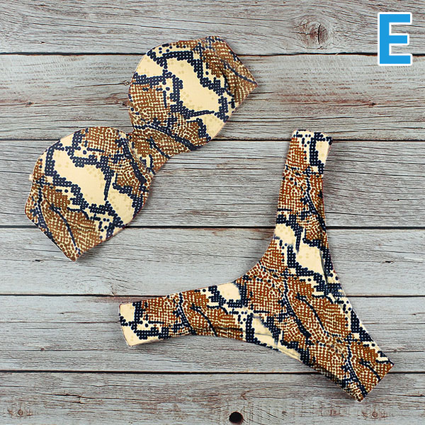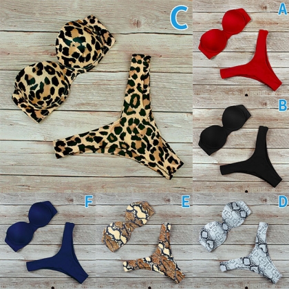 As for your beach days and tropical getaways,you need such a cozy yet sexy bikini set. Its chic printed details can help you catch more eyes. Including a bandeau bikini top and a low-waist bikini bottom,this bikini set can showcase your sexy and seductive curve. When adding a body chain,you can look more beautiful and charming!