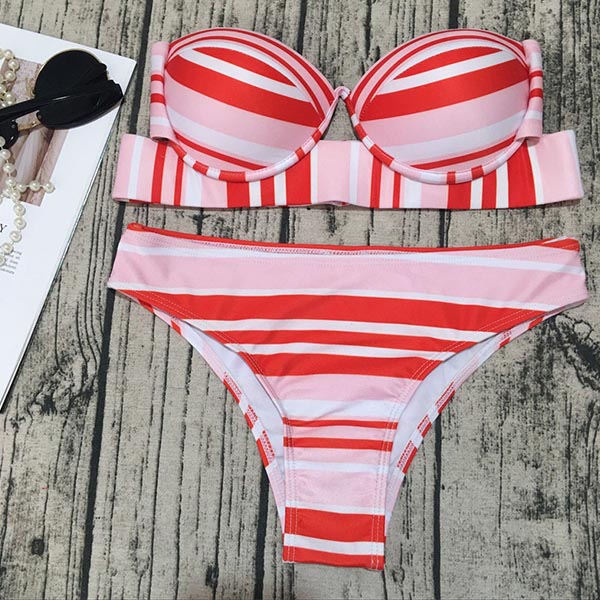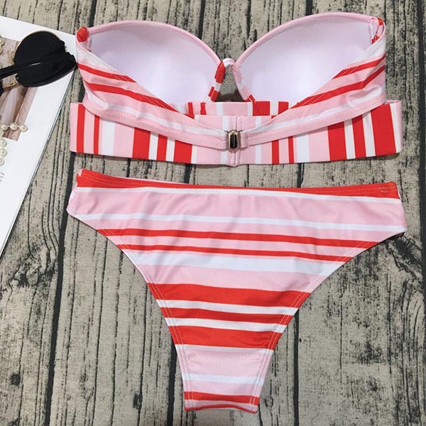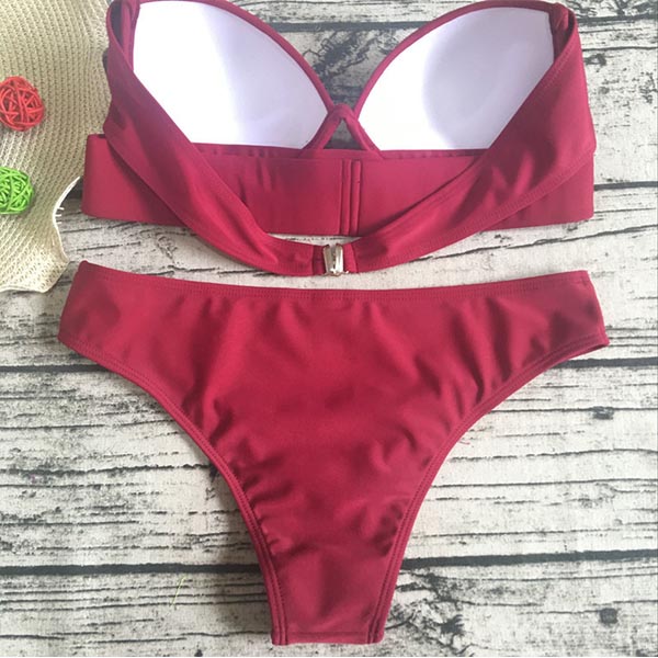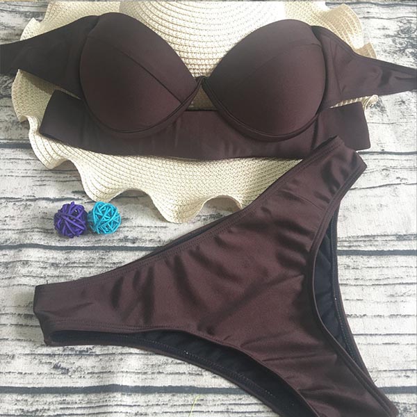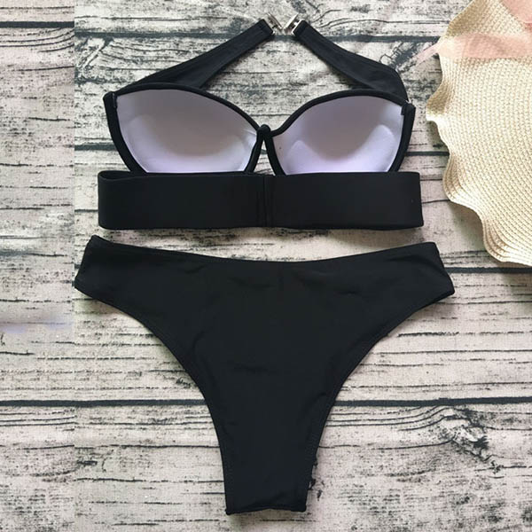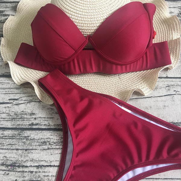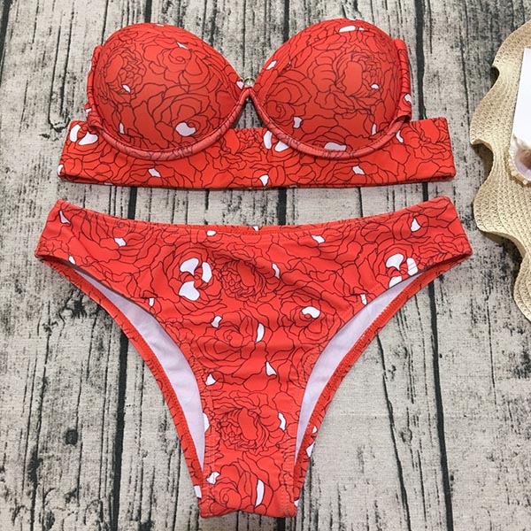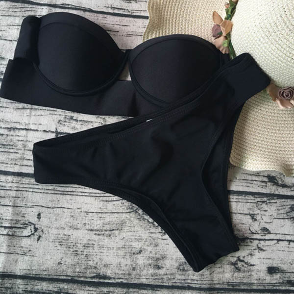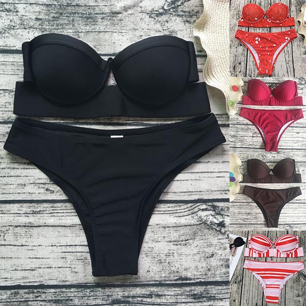Lying on the beach with this bikini set to enjoy these sun-soaked summer days! It consists of a bandeau bikini top and a low-waist bikini bottom,this bikini set can showcase your seductive curve while it maintains the comfy.