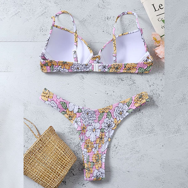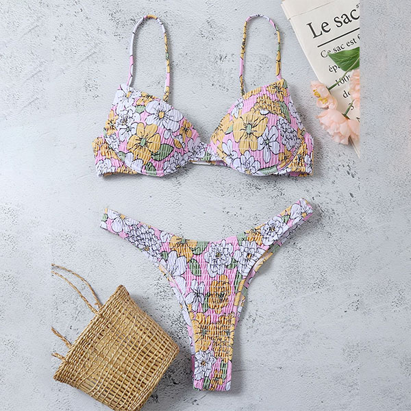 For your beach days,you can trust in this bikini set to be a pleasant sight to draw more attention. It features vibrant floral print details,including a low-waist bikini bottom and a push-up bikini top,this bikini set also can shape your sexy and seductive curve. You can add a body chain to make yourself look more shinning and attractive.
