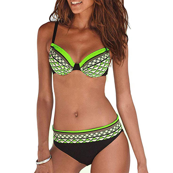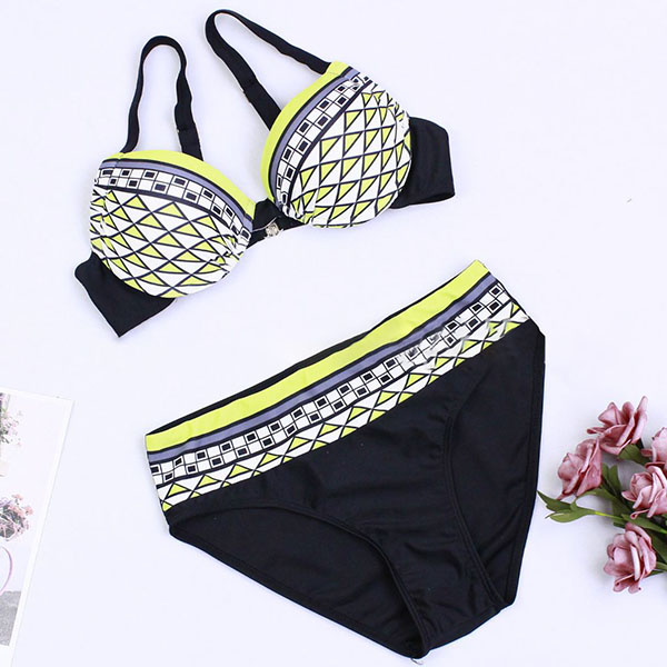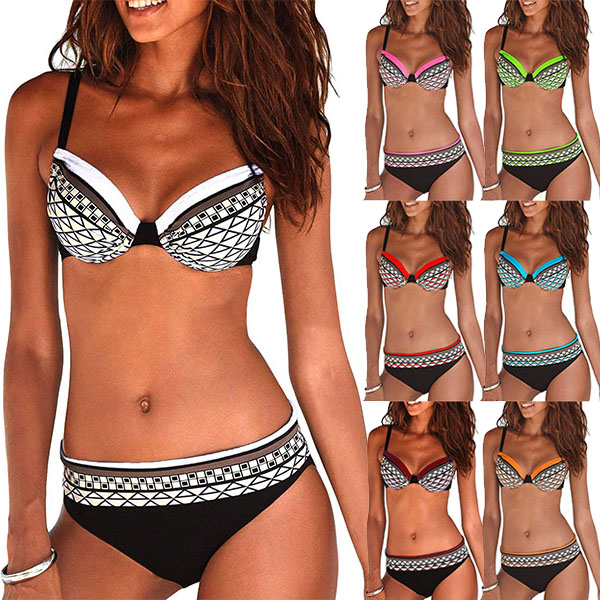 For your beach trips,this bikini set is worth to have a place in your luggage. Including a low-waist bikini bottom and a backless bikini top,designed with chic printed details,this bikini set is sure to showcase your seductive curve. You can trust in this bikini set to have a happy beach trip.