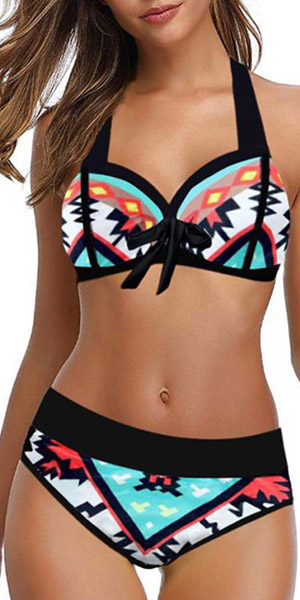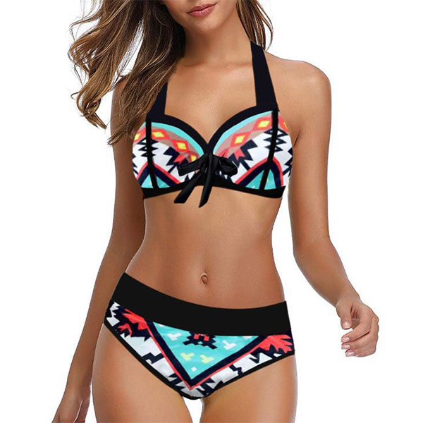 When you wanna head to the seaside to relax yourself,this cozy yet sexy bikini set would be your perfect partner. Features chic and eye-catching printed details,including a halter bikini top and a low-waist bikini bottom,this bikini set is sure to flaunt off your perfect figure and charming skin.