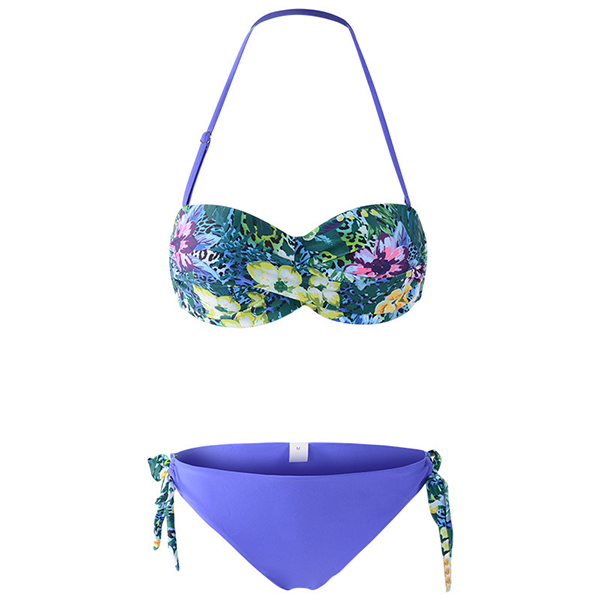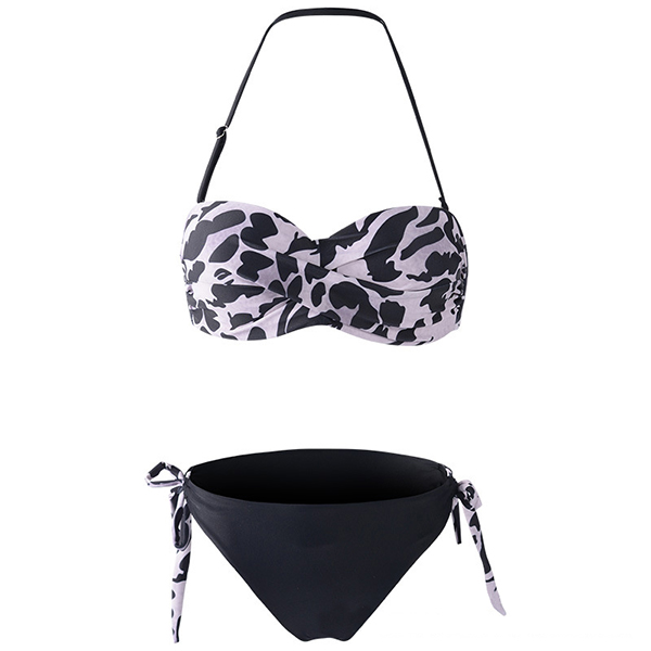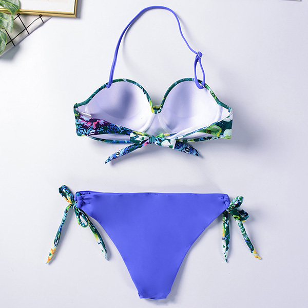 Sexy Low-waist Push-pu Printed Halter Bikini Set