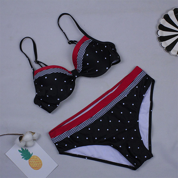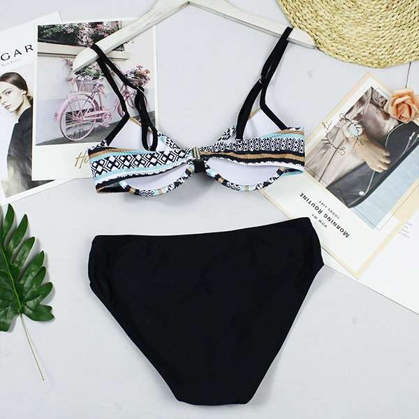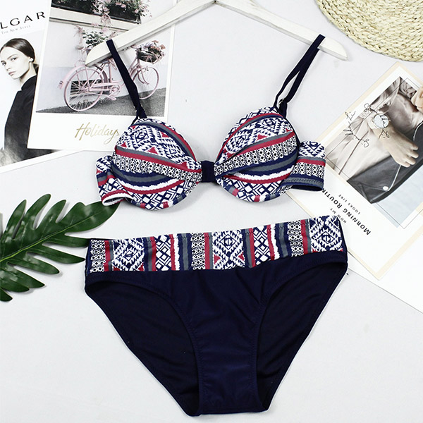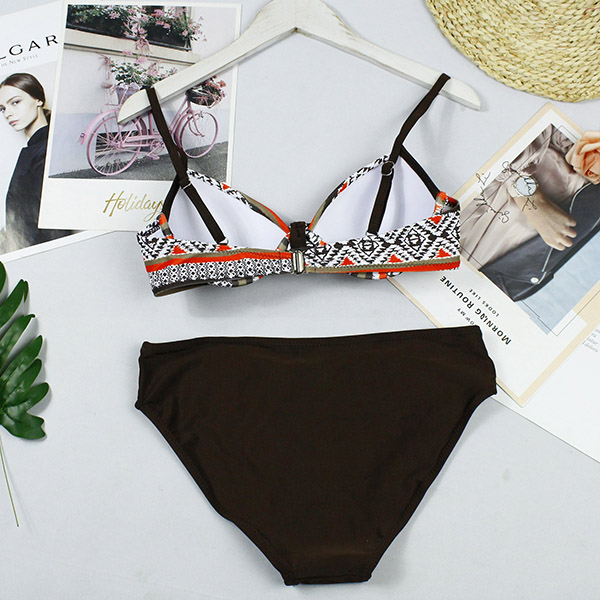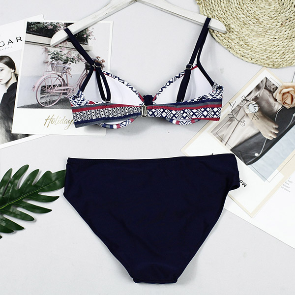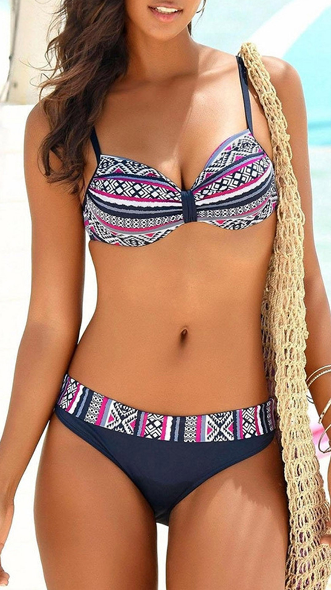 When warm weather starts,you can just head to the seaside to relax yourself. So we suggest you choosing this bikini set. Including a low-waist bikini bottom and a push-up bikini top,designed with chic printed details,this bikini set can showcase your perfect curve. Try to match with a body chain to achieve for a more alluring beach look.