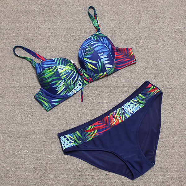 Sexy Low-waist Push-up Underwire Printed Bikini Set
