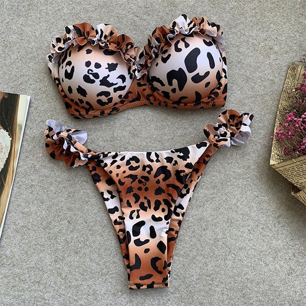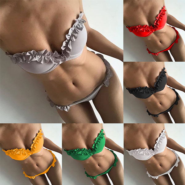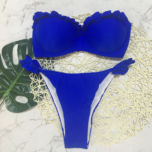 Sexy Low-waist Ruffle Bandeau Bikini Set