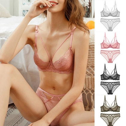 Sexy Low-waist See-through Lace Ultra-thin Bra Set