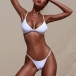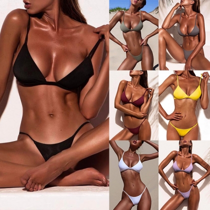 Hey,girls,you can just head to the seaside with this bikini set to relax yourself. Crafted in a solid color,including a low-waist bikini bottom and a push-up bikini top,this bikini set can showcase your perfect figure. You can add a body chain to achieve for a more stunning and charming beach look.