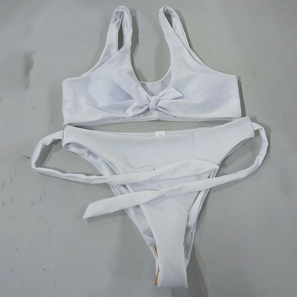 Sexy Low-waist Solid Color Knotted Bikini Set