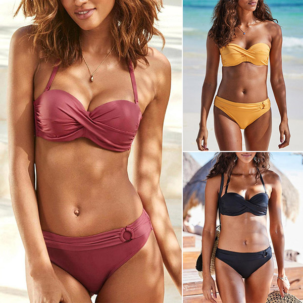 Crafted in a solid color,including a low-waist bikini bottom and a push-up bikini top,this bikini set is a good weapon to shape your sexy and seductive curve. And its soft,breathable and quick-dry fabric can ensure a long-lasting comfort. For your beach days and tropical getaways,this bikini set is a good choice.