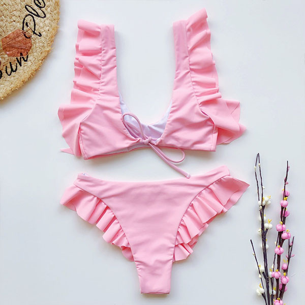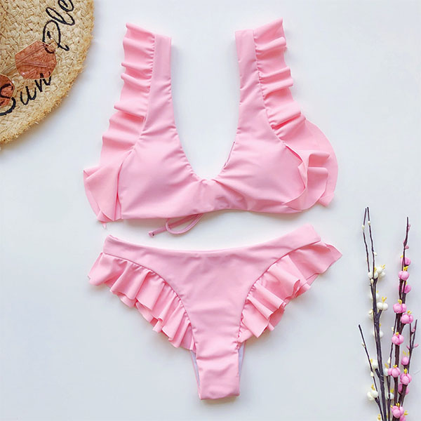 Sexy Low-waist Solid Color Ruffle Bikini Set