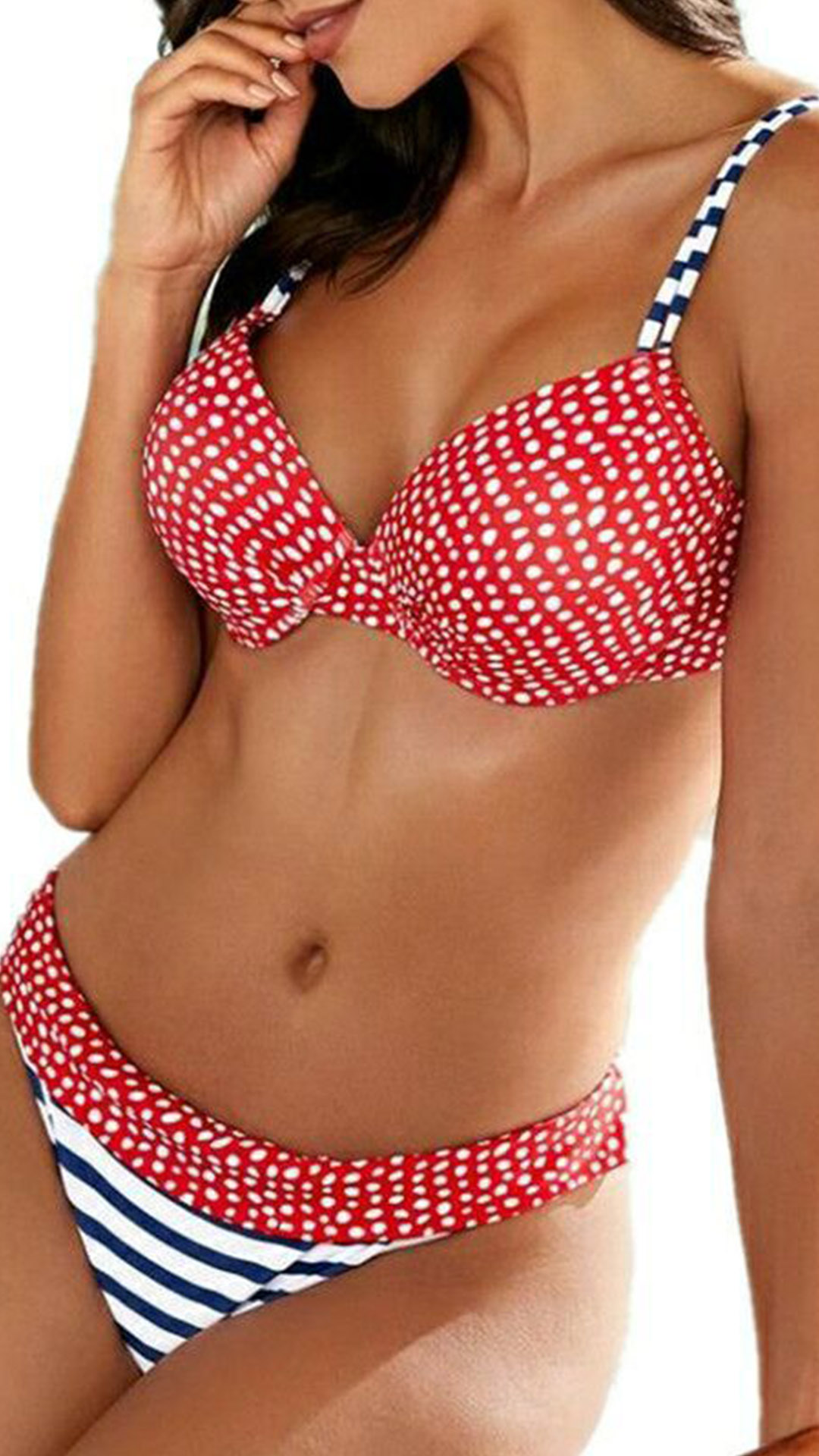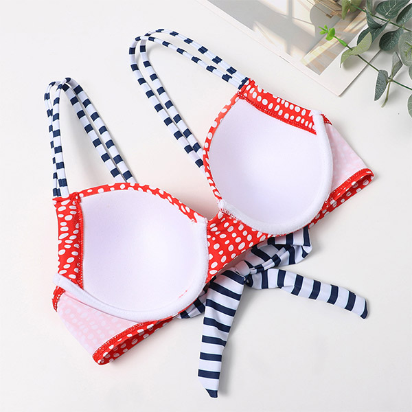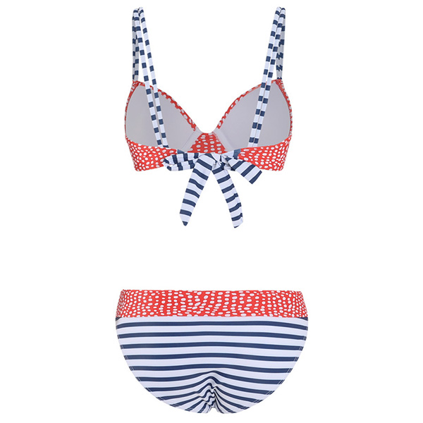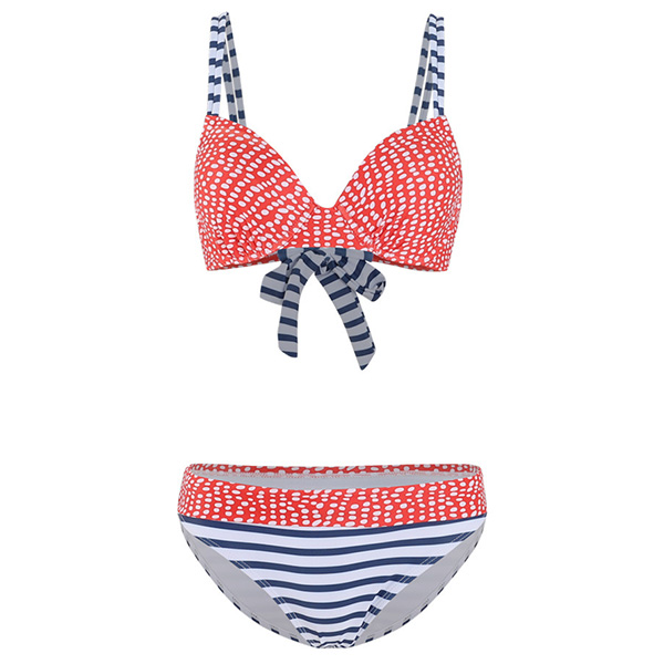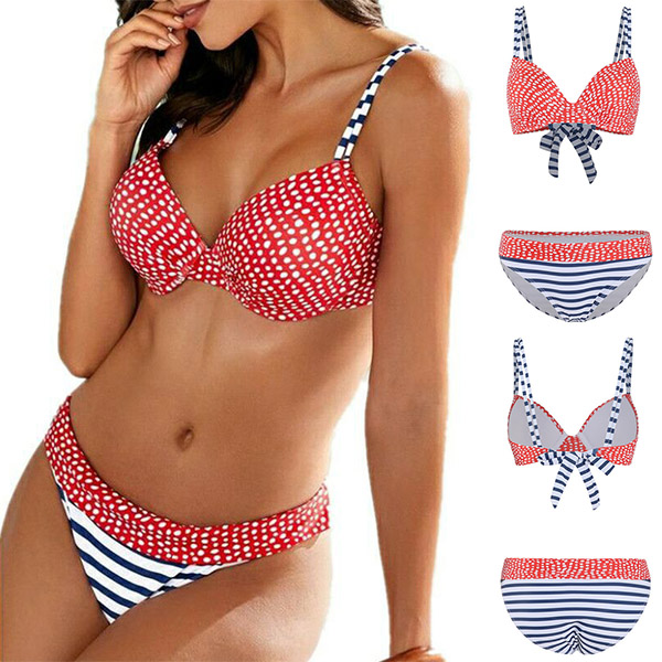 When the summer season hits,you can just head to the seaside to relax yourself. So you need such a cozy yet sexy bikini set. The stripe and dots printed details make it look more playful and eye-catching. Including a low-waist bikini bottom and a push-up bikini top,this bikini set is a good way to flaunt off your sexy and seductive curve.
