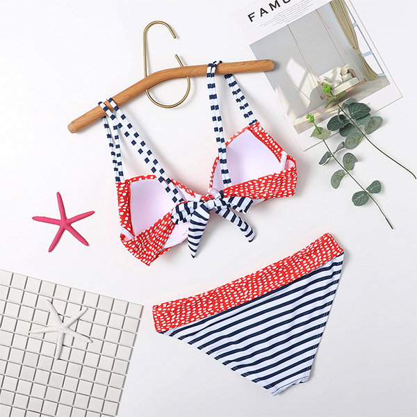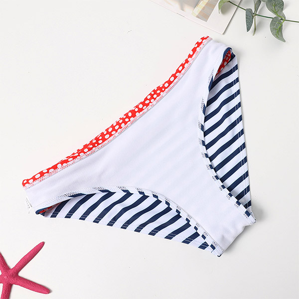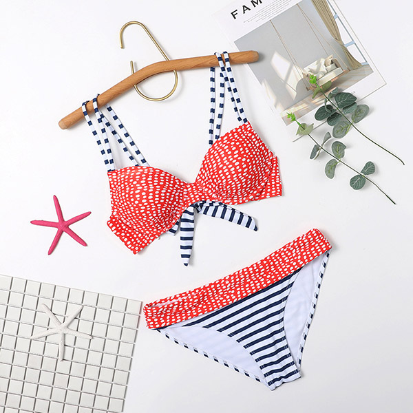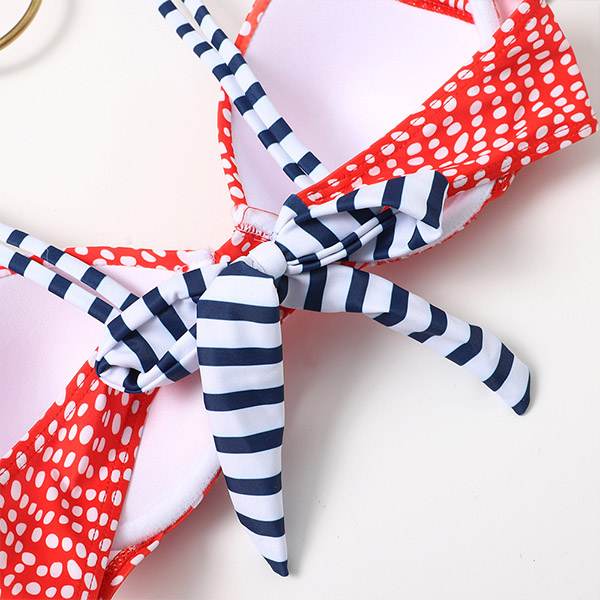 Sexy Low-waist Striped Spliced Dots Printed Bikini Set