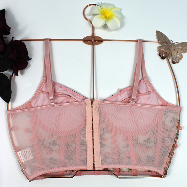 Sexy Mesh Lace Suspender Underwear Outer Top with Fishbone Bra