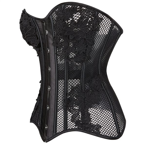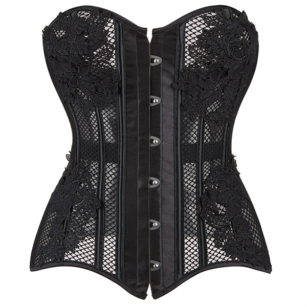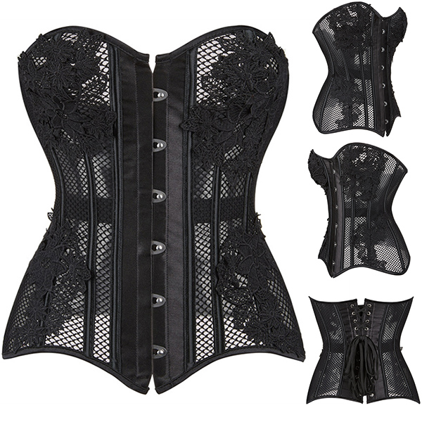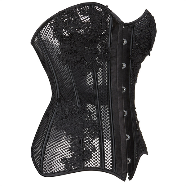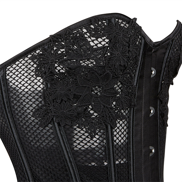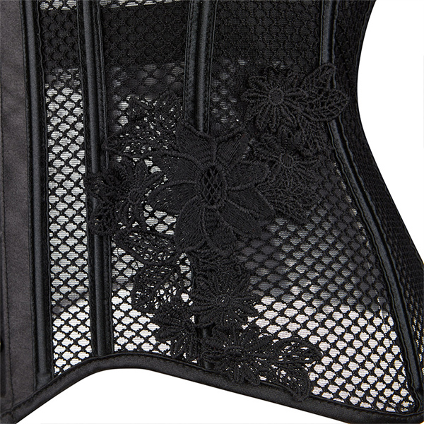 Sexy Mesh-net Floral Embroidered Lace-up Strapless Corset