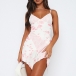 Look at this dress! The key features include a mesh-spliced design, a floral print, a V-neckline, a backless silhouette, and an irregular hemline, all coming together to create a head-turning and figure-flattering look. Pink and blue, which one do you like?