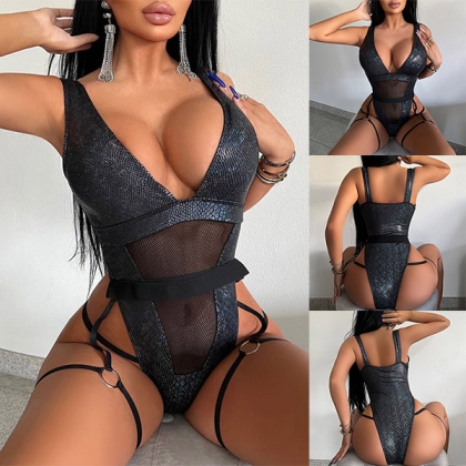 Sexy Mesh Spliced V-neck One-piece Bikini