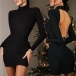 Sexy Mock Neck Long Sleeve Backless Chain Bodycon Dress
