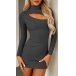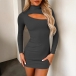 Sexy Mock Neck Long Sleeve Front Cutout Bodycon Dress
